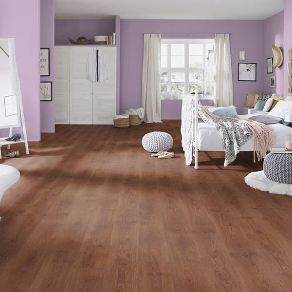 Белорусская компания Kronospan представляет вниманию покупателей новую коллекцию ламината - Castello classic. Castello classic – прочное покрытие для пола, при бытовой эксплуатации срок службы ламината составляет примерно 12-15 лет. Особенный шарм ламинату придает рельефная поверхность, позволяющая создать презентабельное покрытие для пола. Покрытие для пола 32 класса прочности имеет толщину 8 миллиметров и специальный замок Twin Click, сборно-разборного характера, который позволяет быстро произвести сборку ламината. Благодаря плотности основания плиты, замки прослужат максимально долго. Kronospan castello classic – это превосходный ламинат, с повышенной истираемостью поверхности AC4. Ламинат Кроношпан коллекции Castello classic соответствует стандартам качества и не уступает по качеству импортным образцам ламината. Завод Kronospan выпускает экологичную продукцию класса премиум по доступной цене.