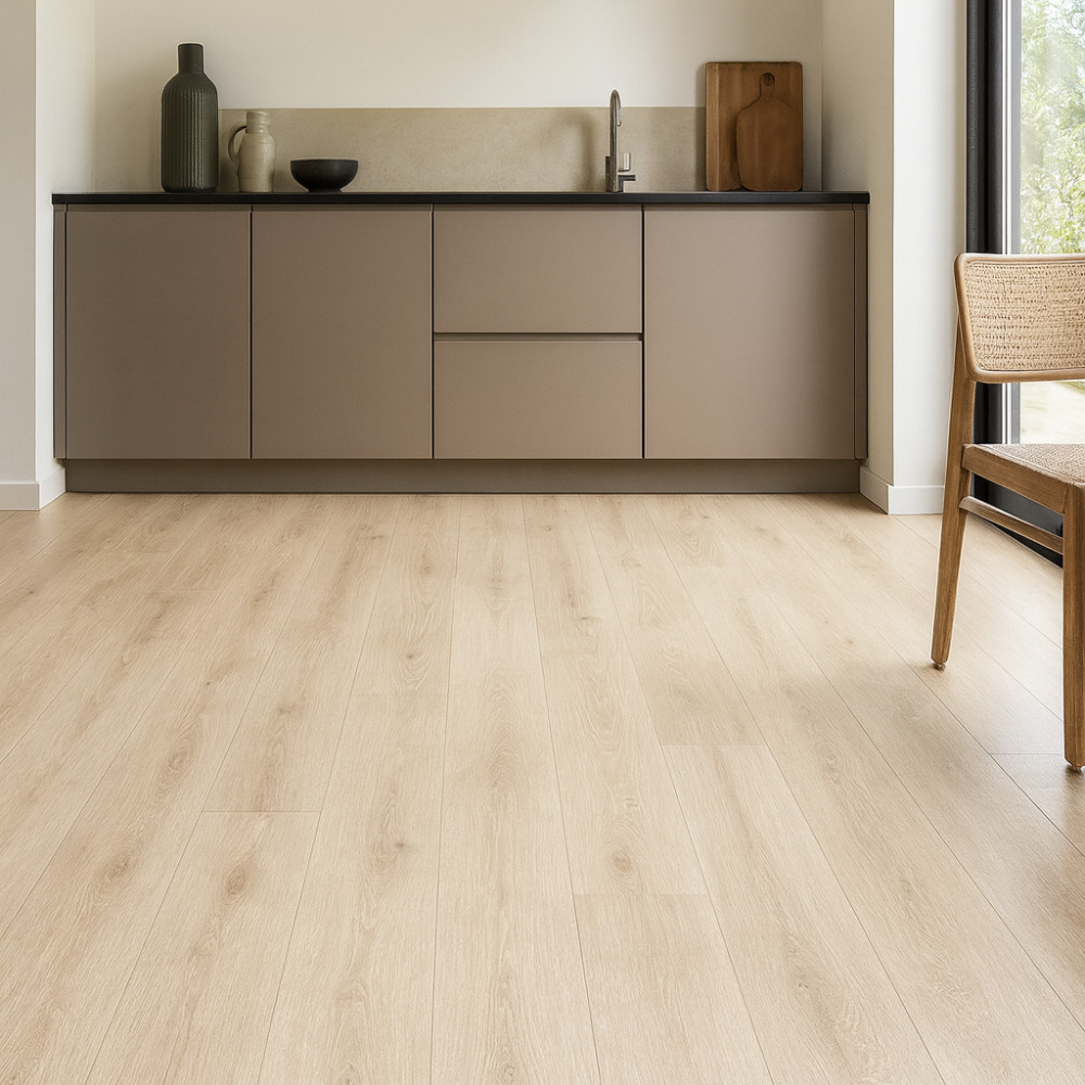Ламинат относится к классу износостойкости 33 кл и имеет толщину 8 мм, что обеспечивает устойчивость к интенсивной эксплуатации и стабильность покрытия при ежедневных нагрузках. Эти параметры делают его надёжным решением для помещений, где пол активно используется и должен сохранять аккуратный внешний вид со временем.